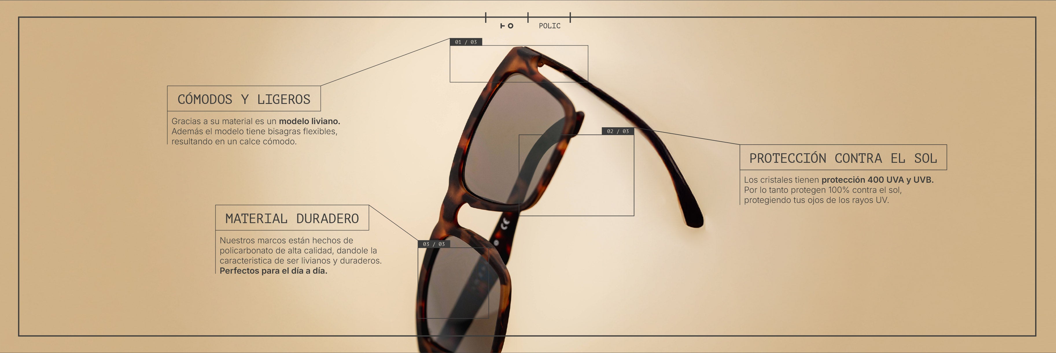 La línea Sunglasses dio punta pié inicial a la marca, con enfoque en un material más ligero y flexible. Todos nuestros modelos son certificados con los estandares más altos de calidad para proteger tus ojos de los rayos UV con estilo y cómodidad.